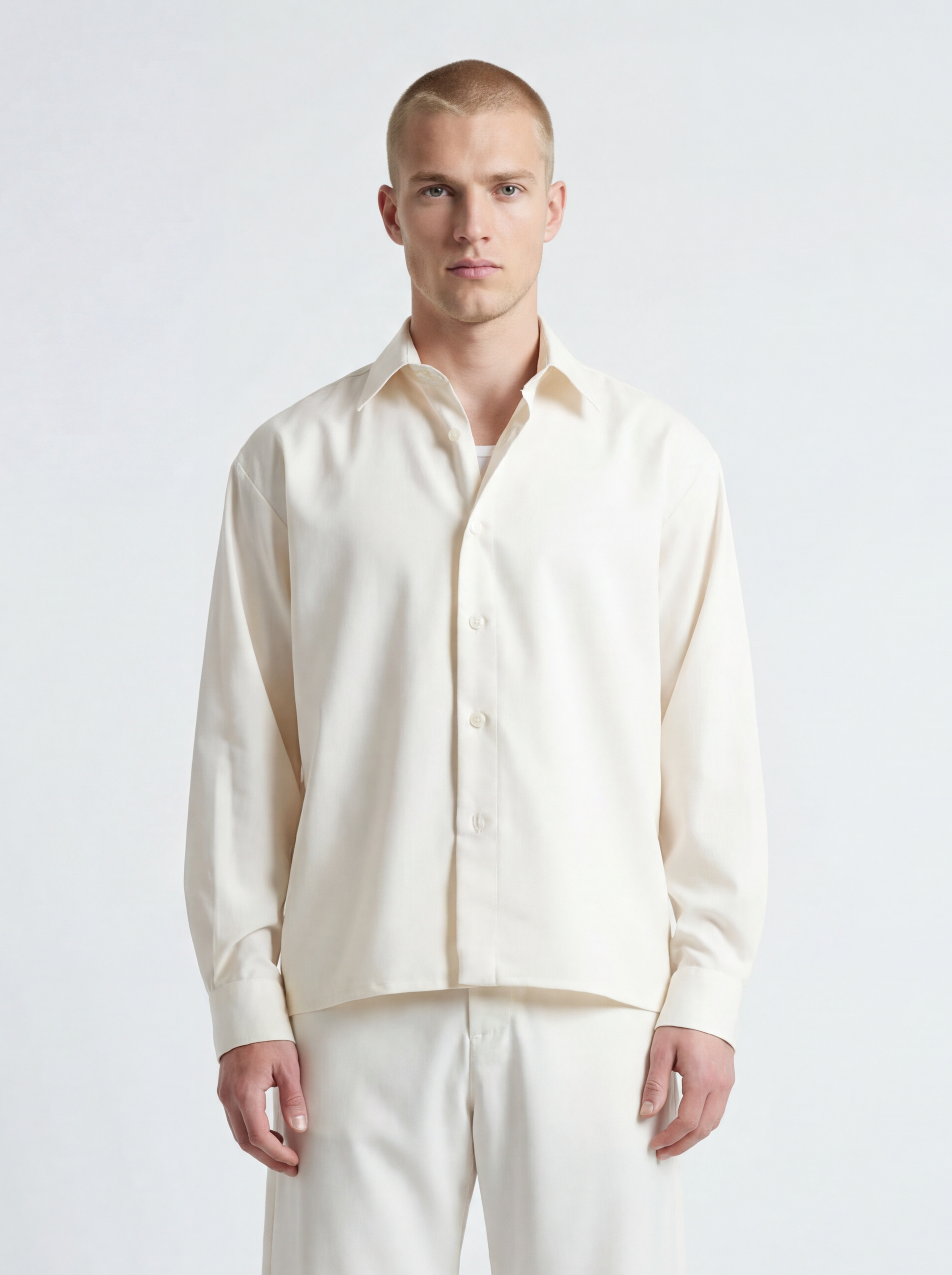 Camicia cropped in poliviscosa – eleganza moderna e silhouette contemporanea.
