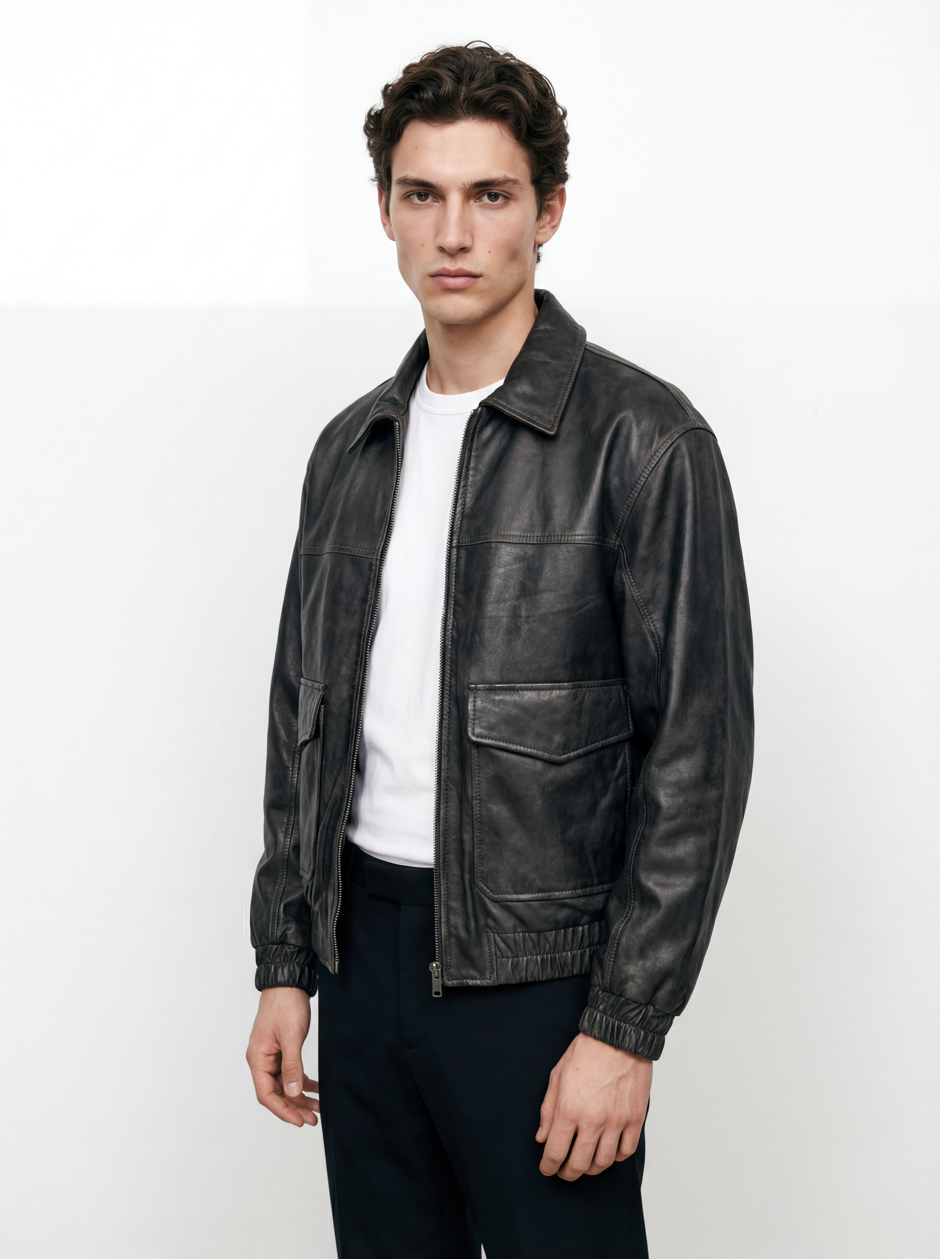 Jacket eco con tasconi dal carattere deciso e contemporaneo. Volumi morbidi, struttura funzionale e dettagli utilitar...