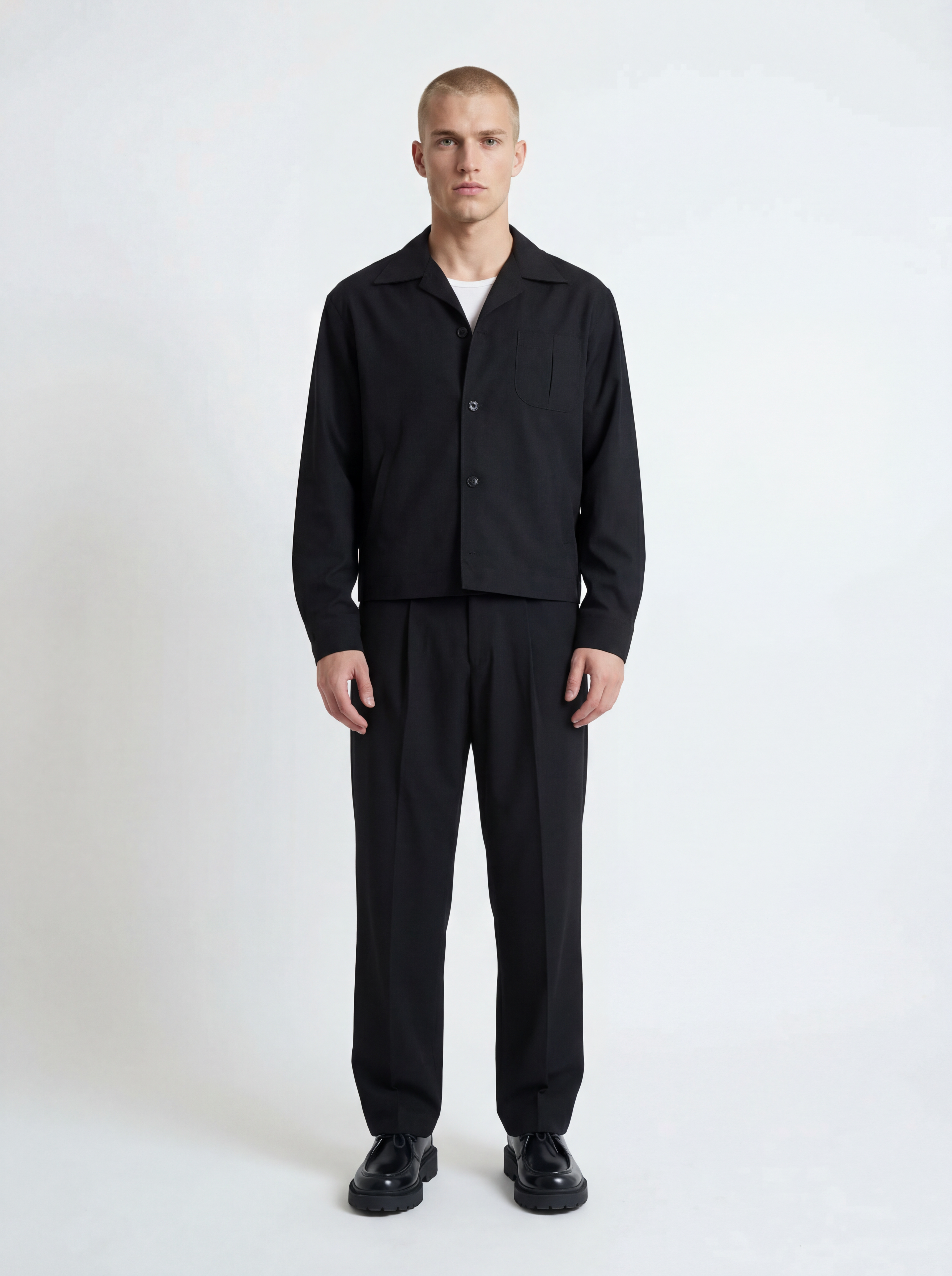 Giacca cropped in poliviscosa – eleganza moderna e silhouette contemporanea.