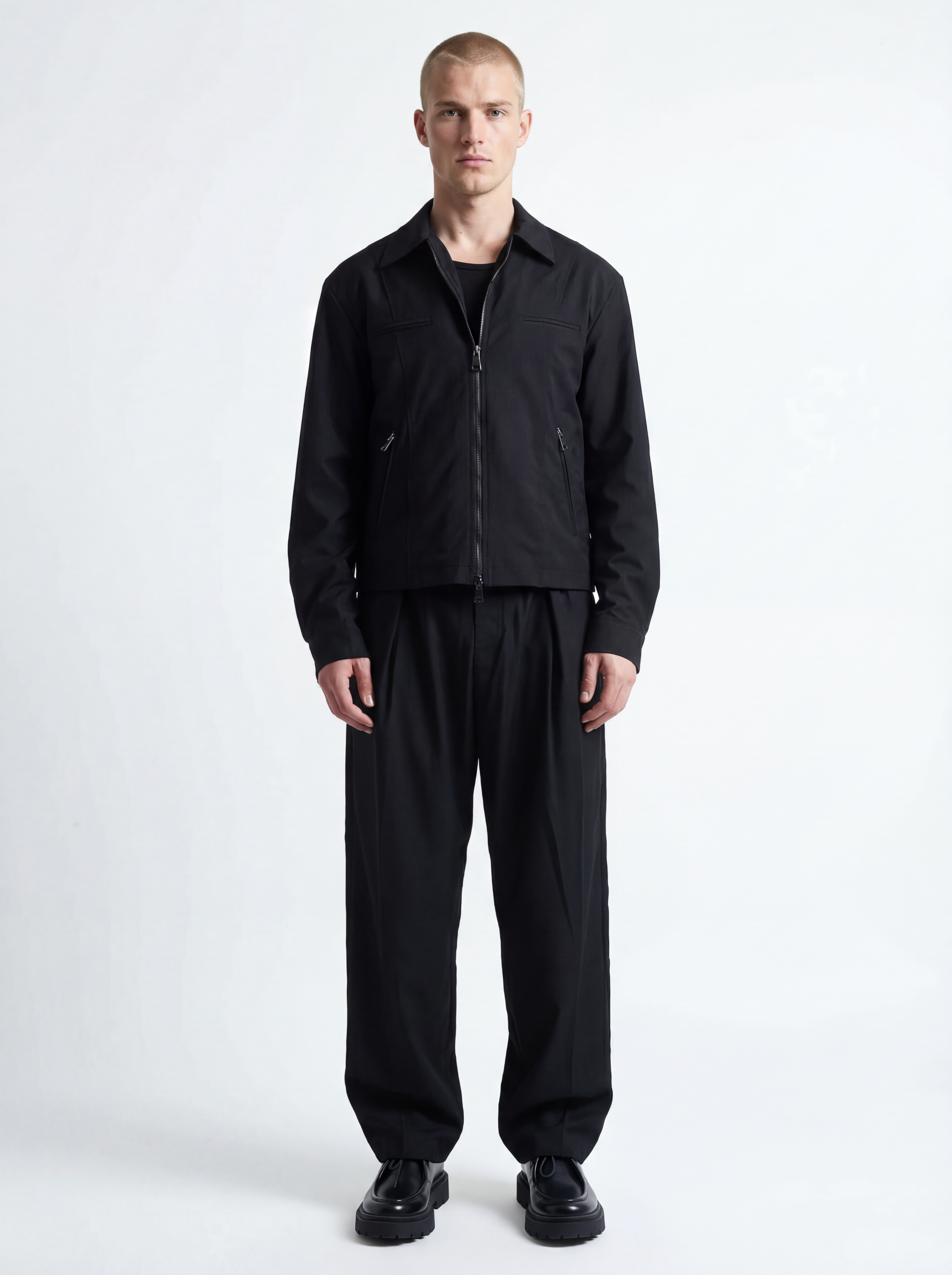 Giubbino crop doppia zip in poliviscosa – stile contemporaneo e dettagli funzionali.