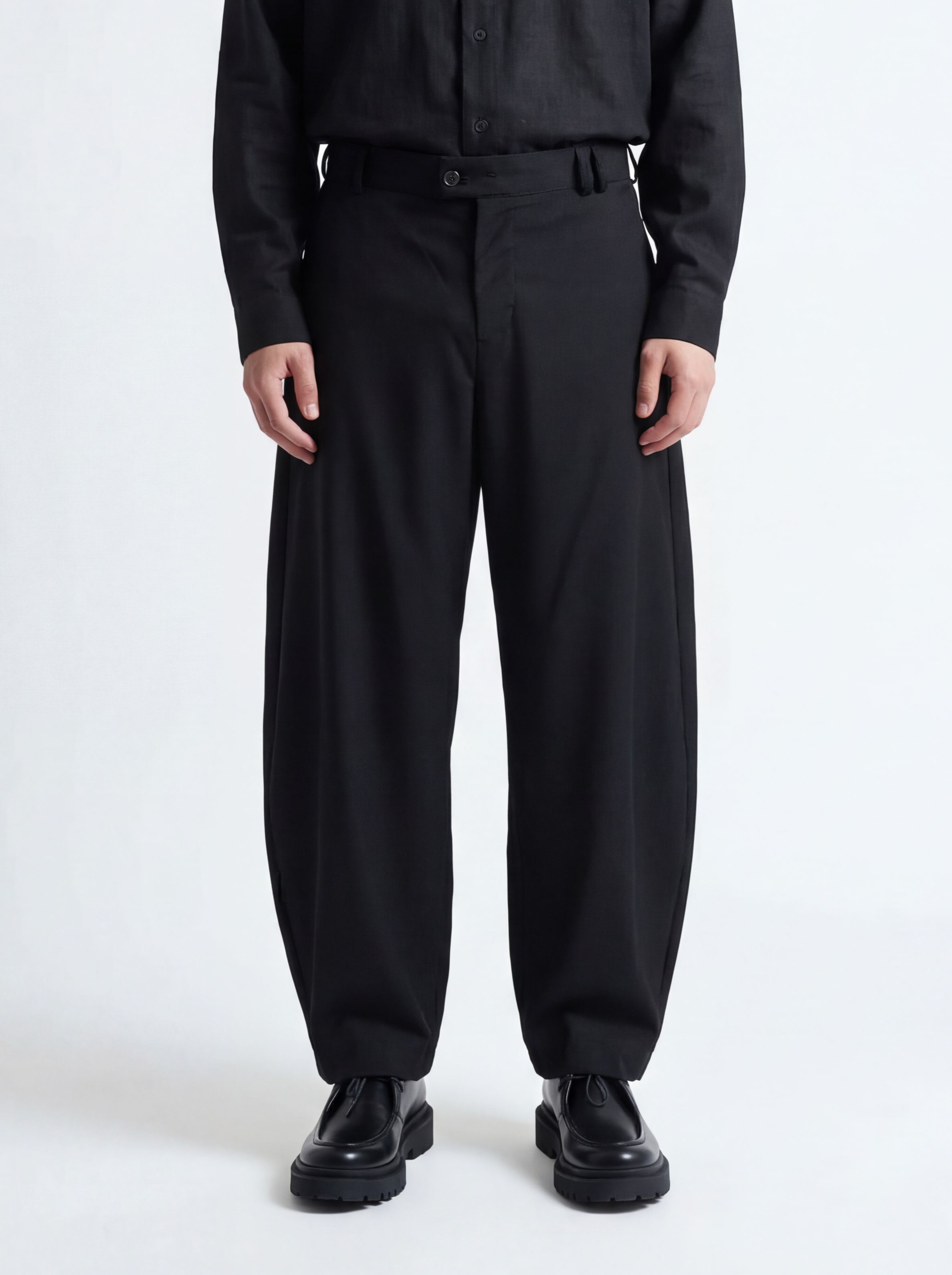 Pantalone balloon fit in poliviscosa – eleganza strutturata e fluidità moderna.